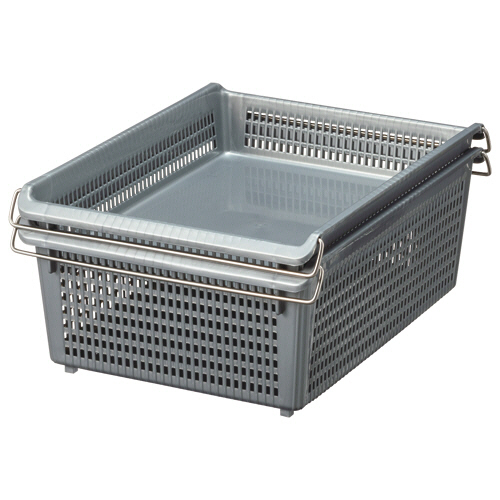 スタックトレーメタルハンドル付 浅型小 グレー 1個 【5-8営業日遅延】