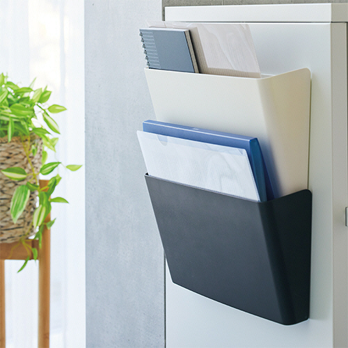 スチール面に貼り付けて、省スペースで使えるマグネット付きポケット。