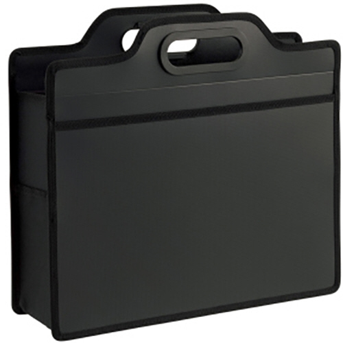 ●便利なポケット付きで正面にはクリアーホルダーやパンフレットなどのA4サイズの書類が、サイドポケットにはペンやスマホなどの小物が収納できます。