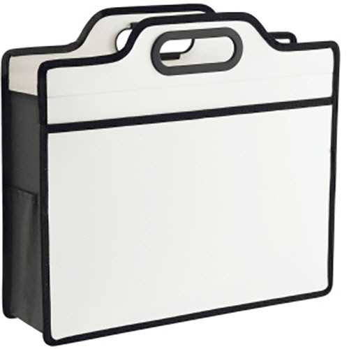 ●便利なポケット付きで正面にはクリアーホルダーやパンフレットなどのA4サイズの書類が、サイドポケットにはペンやスマホなどの小物が収納できます。