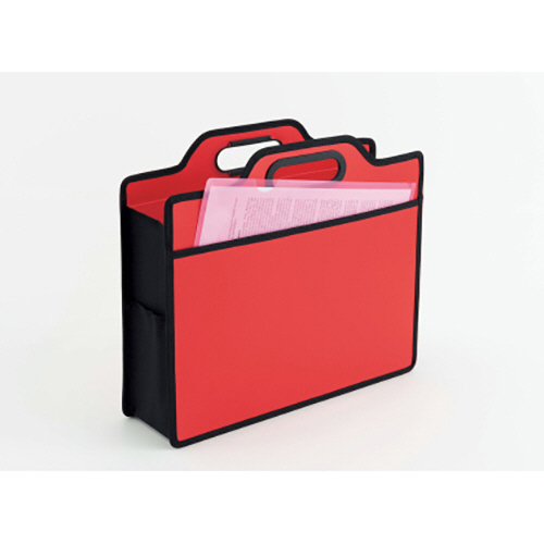 ●便利なポケット付きで正面にはクリアーホルダーやパンフレットなどのA4サイズの書類が、サイドポケットにはペンやスマホなどの小物が収納できます。