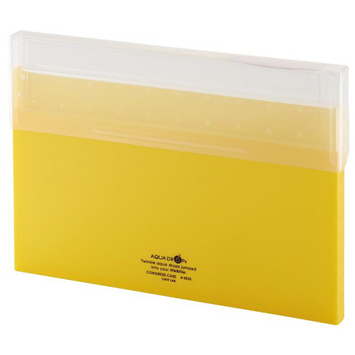 ●フタが大きく開くので、書類の出し入れがスムーズにできます。A4サイズ150枚収容のコングレスケース、色は黄です。