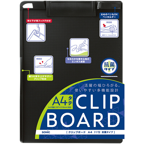 問診表などの記入やアンケートの回覧に。抗菌加工を施したクリップボードです。