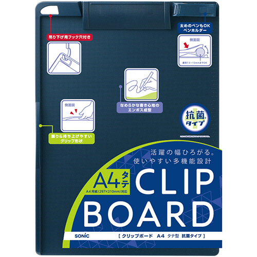問診表などの記入やアンケートの回覧に。抗菌加工を施したクリップボードです。