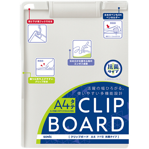 問診表などの記入やアンケートの回覧に。抗菌加工を施したクリップボードです。