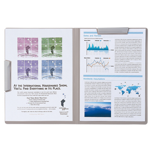 ●A3・B4サイズも収容可能なクリップファイルのライトグレーです。