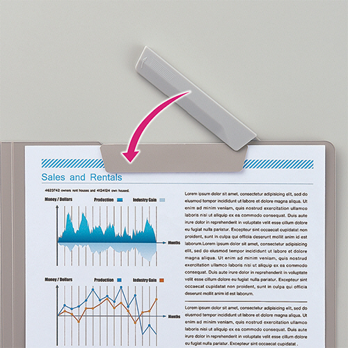 ●クリップで書類を挟むだけ。