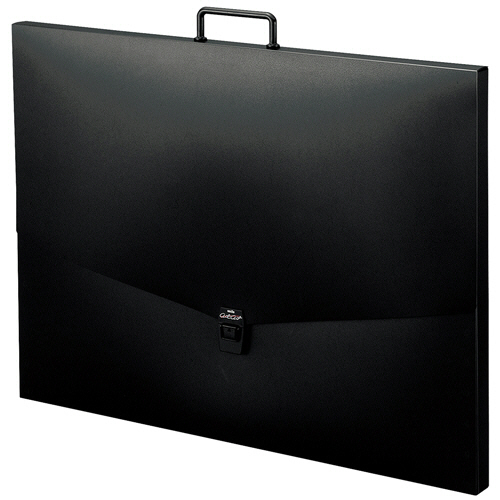 大判の作品や図面を折らずに収容。小物なども同時に入るボックス型手付きケース。