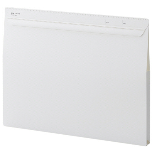 ●誰でもカンタン!力を入れずに開閉できるオリジナルフラップ機能を採用したA4ヨコ型のフリップファイル。ホワイトです。