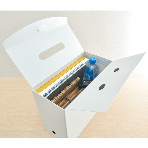 書類からマウス、イヤホンなどの小物まで、ひとまとめに収納できるワイドサイズのボックスファイルです。在宅ワークで使用するアイテムをまとめて収納することができます。
