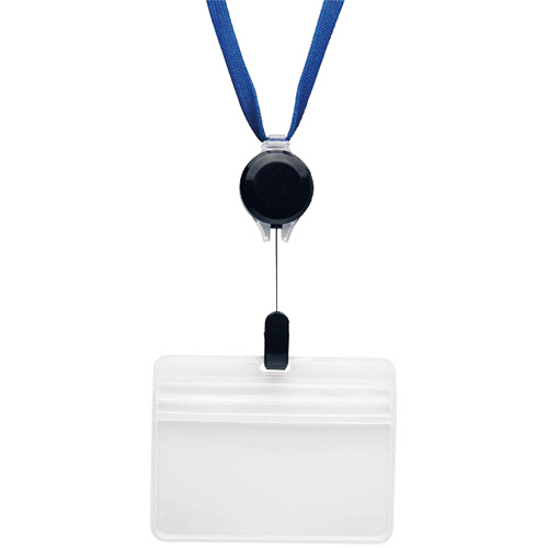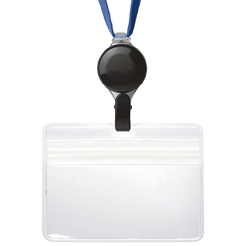 ●タッチ認証に好適な吊下げ名札。ひもは青色です。
