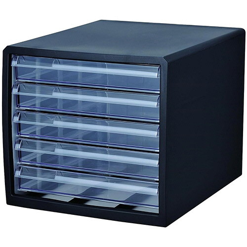 ●A4用紙も収納可能な引き出しサイズ。浅型5段のレターケース、色はブラックです。