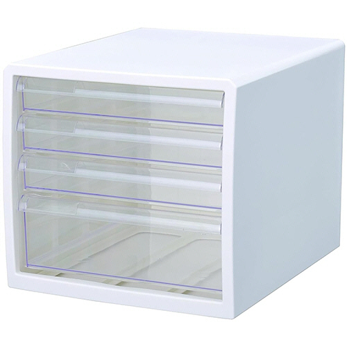 ●A4用紙も収納可能な引き出しサイズ。浅型3段・深型1段のレターケース、ホワイトの4台セットです。