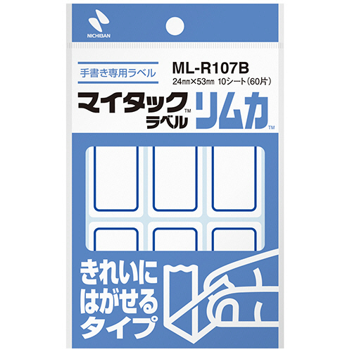 ●上質紙を使用したきれいにはがせるタイプの手書き用ラベル。小サイズの青枠つき、6片×10シート入の10パックです。