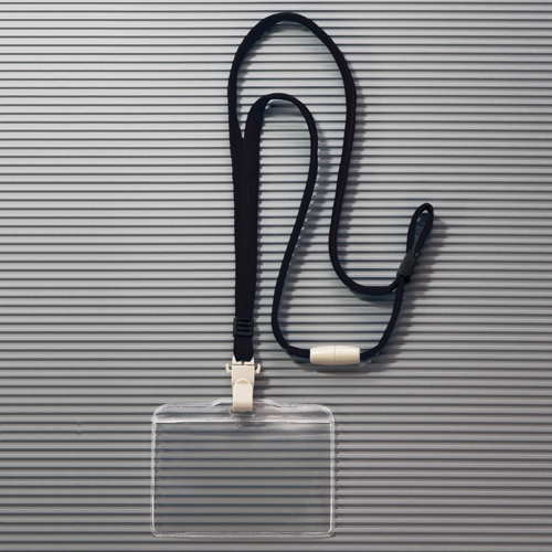 つりさげ名札 ヨコ型 ソフトタイプ 平ひも ブラック 1個 【5-8営業日遅延】