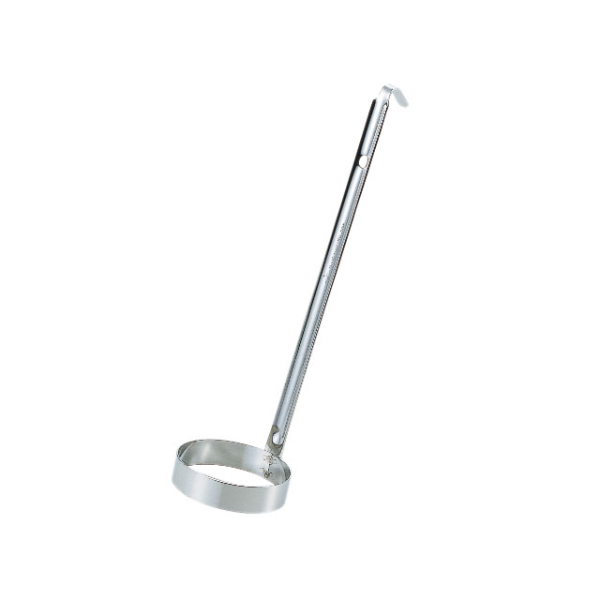 ステンレス製で色やにおい移りの心配もなく、劣化も少なく長く活躍してくれます。柄の先がフックになっているので、鍋などの縁に掛けたり、吊るす事ができます。サイズ:(リング)直径φ108×高さ20×柄の長さ270mm材質:SUS304(18-8ステンレス)(リング)直径φ108×高さ20×柄の長さ270mm