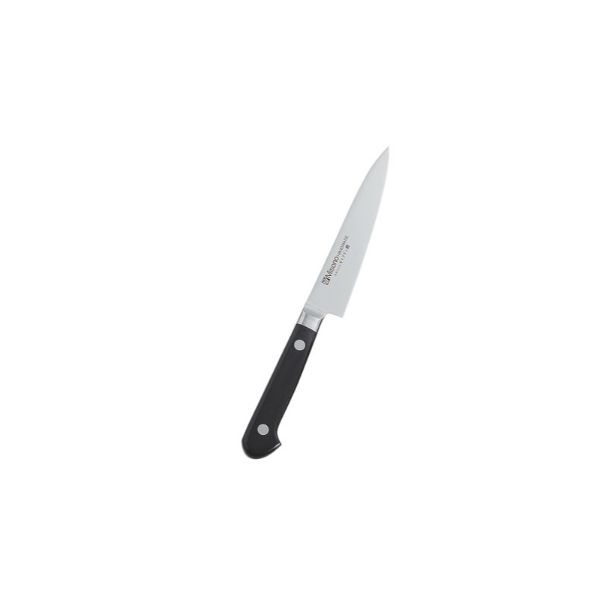 三位一体のミソノステンレスモリブデン鋼。モリブデンとバナジウムの入ったハイカーボンの高級ステンレス・モリブデン鋼を使用し、ハイレベルの技術を駆使した理想の洋庖丁です。刀身と一体のツバが衛生的。切れの冴えと耐久性を両立させた最高の出来ばえが、またひとつ秀作を生みました。材質:ステンレスモリブデン鋼