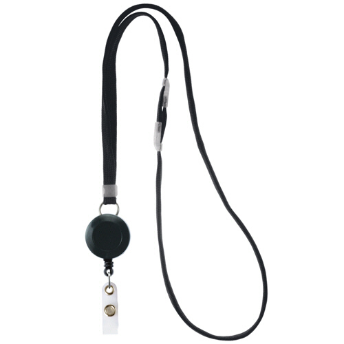 ●リール式吊下げひも。色は黒、5本セットです。
