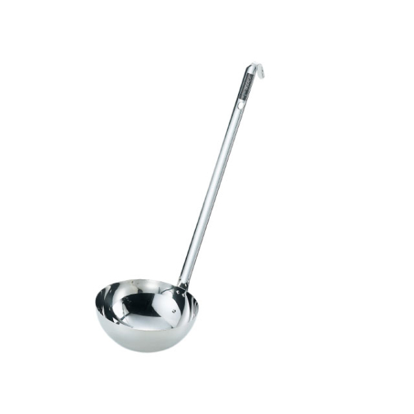 様々な用途に合わせた業務用ならではのサイズバリエーション。900cc~2000ccと大型サイズもご用意しております。ステンレス製で色やにおい移りの心配もなく、劣化も少なく長く活躍してくれます。柄の先がフックになっているので、鍋などの縁に掛けたり、吊るす事ができます。