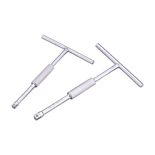 T形の先端に角ドライブ付で、早回しができるハンドルです。