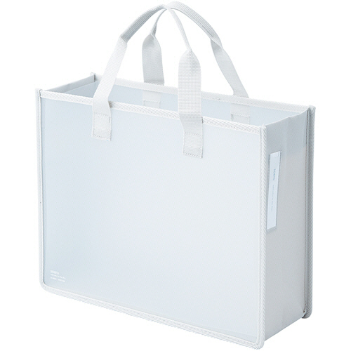 ●オフィスの移動用バッグに。A4ファイルも収納できるストレージバッグ、色はフロストクリヤーです。