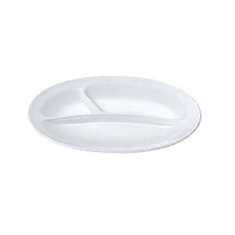 メラミン食器 No.53W 小判ランチ皿(小)3ツ切 (白) エンテック