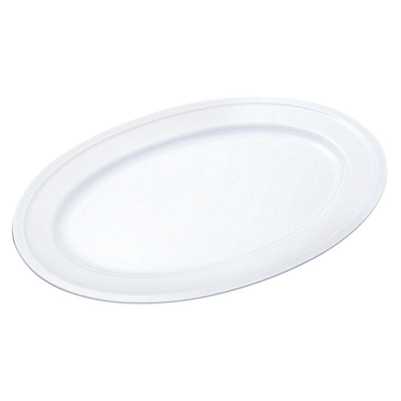 洗練されたフォルムはお料理を引きたてつつ、スタイリッシュな空間を演出します。介護施設や病院、学校給食で定番のメラミン食器。業務用に適した、強度が魅力です。[品番]320004。サイズ:455×310×H24mm材質:メラミン樹脂455×310×24mm