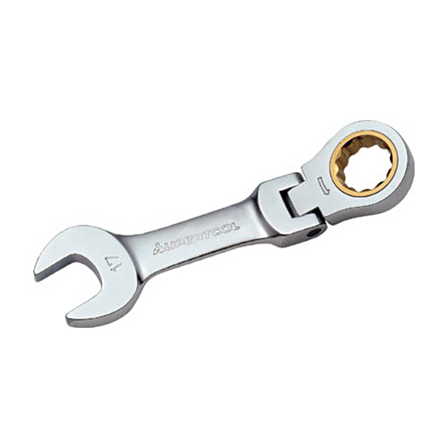 ●材質:Cr-V●艶消しメッキ仕上●ソケット・ギア部:チタンコーティング仕上●対辺寸法(mm):17●厚み(mm)スパナ:8●厚み(mm)めがね:10.5●全長(mm):128