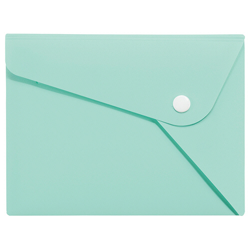 ●ポストカードサイズのPPカラーホルダー「PELTO」、色はミントグリーンです。