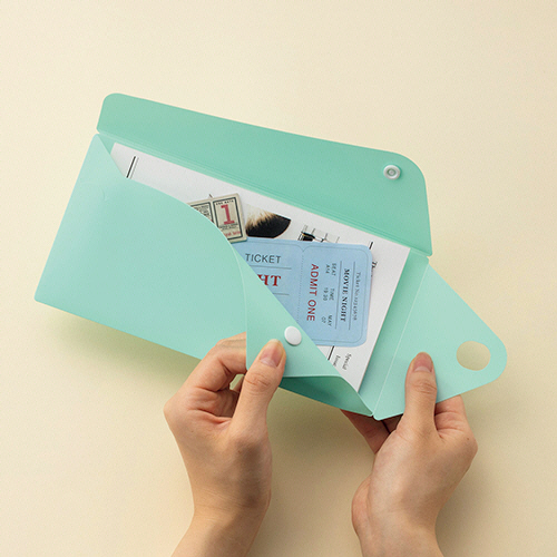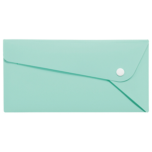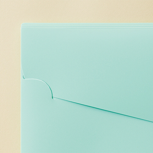 ●A4三つ折りサイズのPPカラーホルダー「PELTO」、色はミントグリーンです。