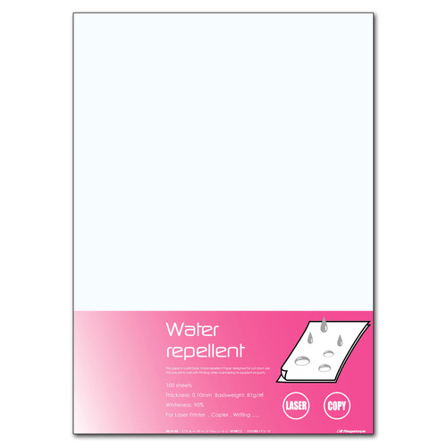 ●紙の両面に雨や水をはじく撥水加工を施した、A3・中厚口の撥水紙です。