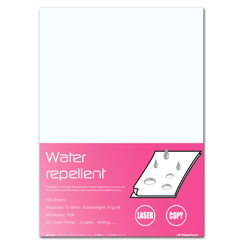 ●紙の両面に雨や水をはじく撥水加工を施した、A4・中厚口の撥水紙です。