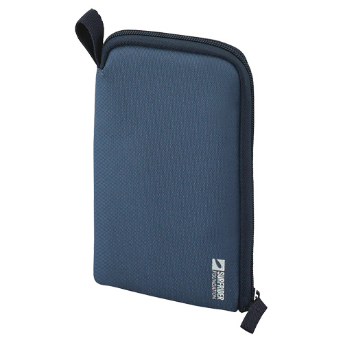 ●海洋汚染の原因になっているオーシャンバウンドプラスチックから作られた生地を使用したスタンドペンポーチ。カラーはオーシャンネイビーです。