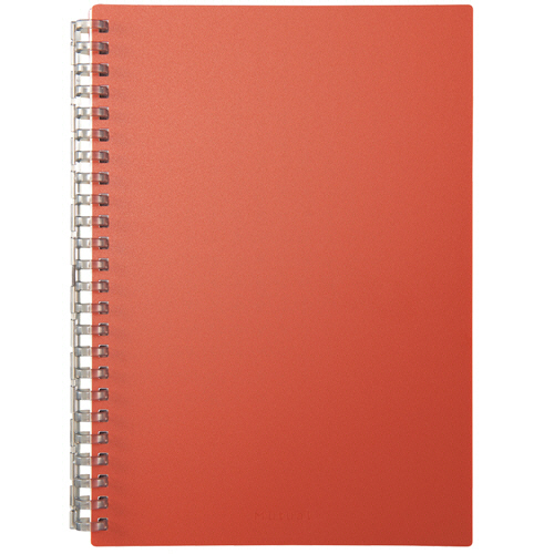 ●とじ具が開くのでリーフの差替えが可能なノート。A5タテ・5mm方眼罫、表紙色はテラコッタオレンジです。