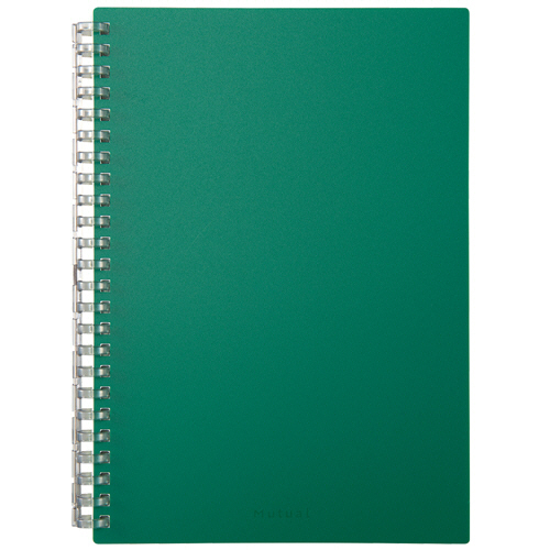 ●とじ具が開くのでリーフの差替えが可能なノート。A5タテ・5mm方眼罫、表紙色はディープグリーンです。