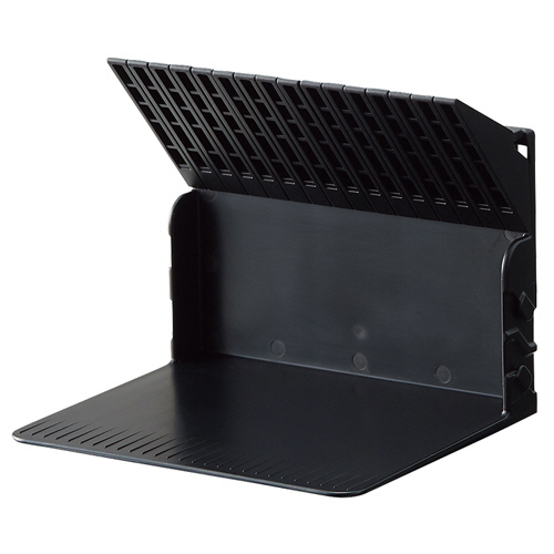 ●本などを手前側から差し込むとストッパーが上がり、両サイドのストッパーが差し込んだものを保持するので倒れません。