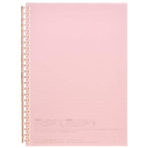 オープンリングノート A5タテ 24穴 B罫 リーフ30枚付属 ピンク 1冊 【5-8営業日遅延】