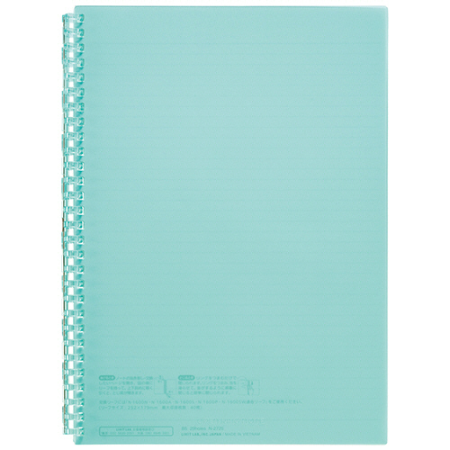 ●とじ具が開くのでリーフの差替えが可能なオープンリングノート。セミB5タテ型、色はグリーンです。