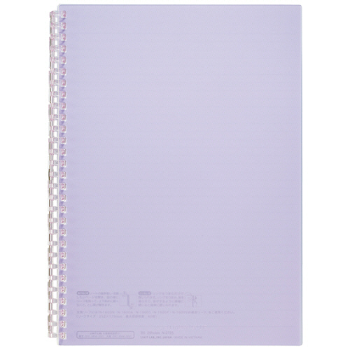 ●とじ具が開くのでリーフの差替えが可能なオープンリングノート。セミB5タテ型、色はパープルです。
