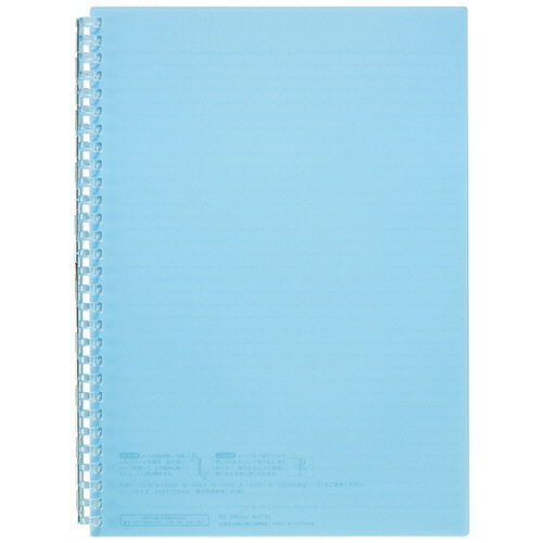 ●とじ具が開くのでリーフの差替えが可能なオープンリングノート。セミB5タテ型、色はライトブルーです。