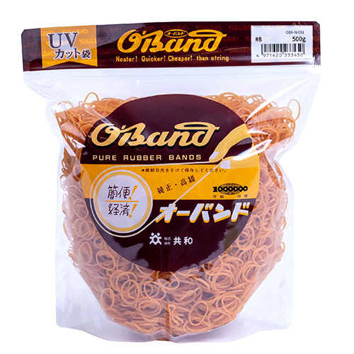 ●番手#8のゴムバンド、業務用・徳用包装500g。