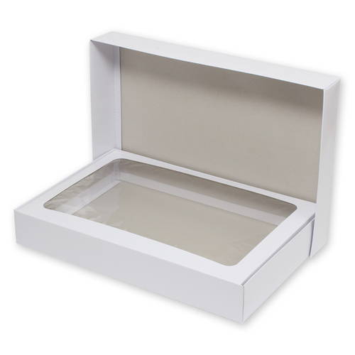 シーツやタオルの包装に!ワンタッチで組みあがるフィルム付きギフト箱(白)