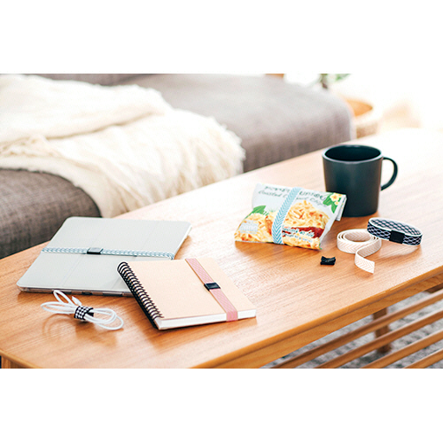 ●手帳やファイル、お弁当箱やケーブルなどのバンド留めに便利なゴムバンド「ゴムdeパッチ」、色はダークブルーです。