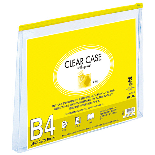 ●マチ幅30mmのクリヤーケース、B4ヨコの黄、25枚入です。