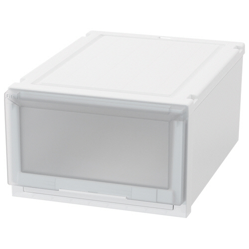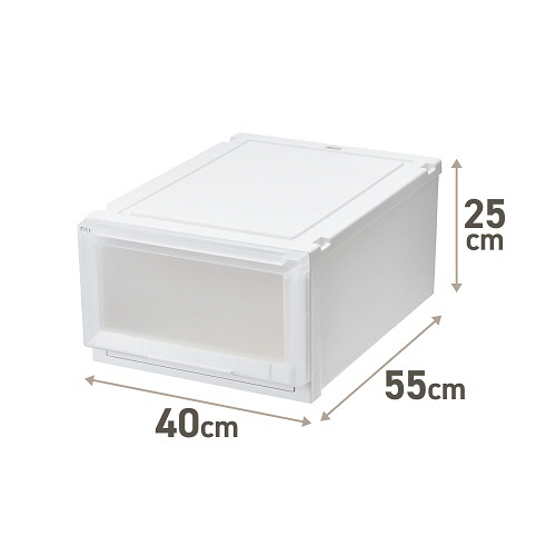 ●上からも下からも引き出せるフィッツケース アドバンス。幅40×奥行55×高さ25cmタイプ、色はホワイトクリアです。