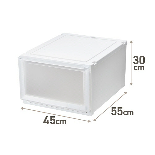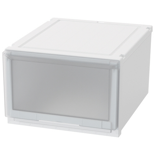 ●上からも下からも引き出せるフィッツケース アドバンス。幅45×奥行55×高さ30cmタイプ、色はホワイトクリアです。