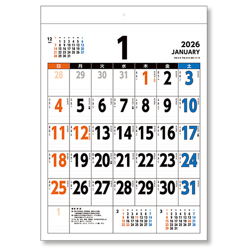 ●6週表示で予定も書きやすく実用性に優れたA2サイズの壁掛カレンダーです。