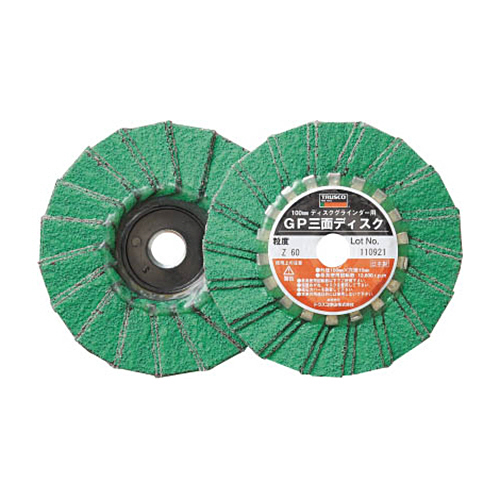 ●研磨布をV字に折りこんで、パットに接着してあるため、上面、下面、側面の3ヵ所で研磨作業が可能です。GPマルチディスクよりクッション性は劣るが、深削りの心配がなく、凹凸面にピッタリとフィットします。また、パットの根元まで使用でき非常に経済的です。