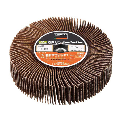 一般金属用です。弾性があり、ディスクペーパー(平面使用)としても、フラップホイール(側面使用)としても使用できます。研磨布と研磨布の間が多少開いているため、目づまりが少なく最後まで使用できます。