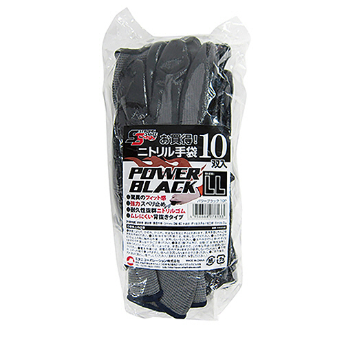 ●LLサイズ・パワーブラックのニトリル背抜き手袋、10双入りです。